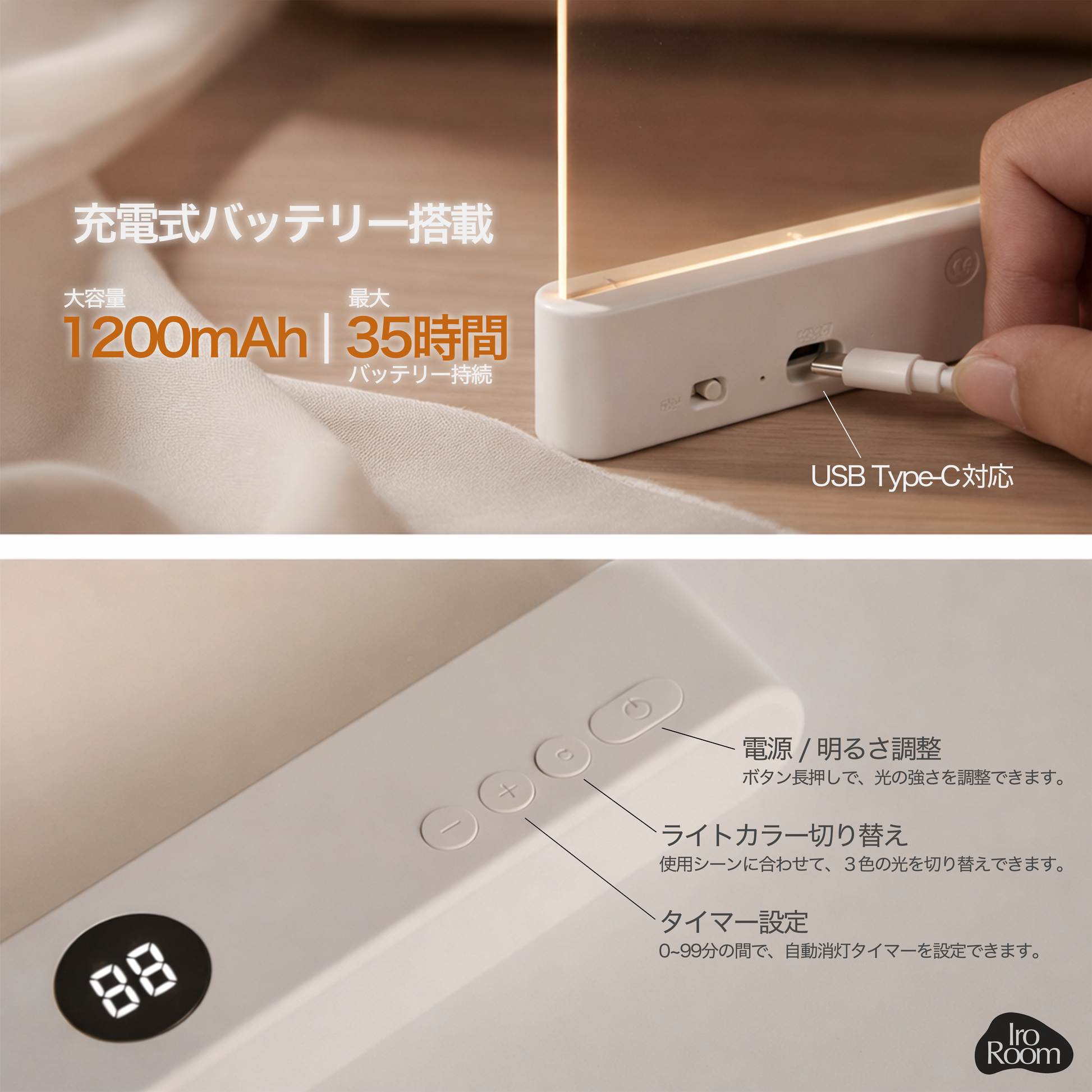 明るさや光の色も調整できるため、夜の読書にも適しています。